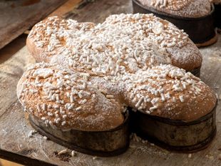 Identique au panettone dans sa composition, mais moins imposant par son poids, moulé en forme de colombe et parsemé de sucre perlé, ce gâteau est traditionnellement servi à Pâques.