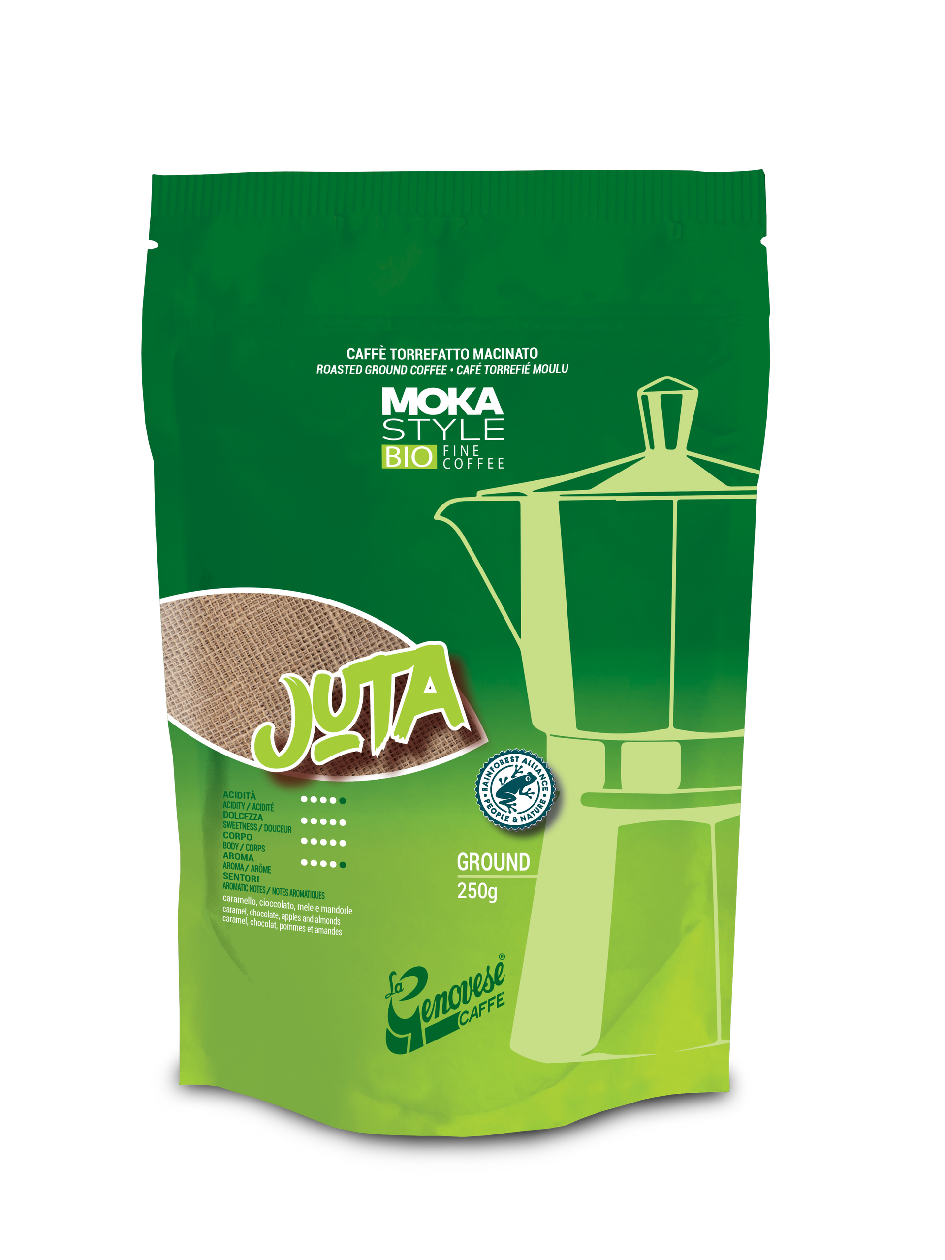 Mélange de café Arabica 100% issu de l'agriculture biologique et certifié Rainforest Alliance.